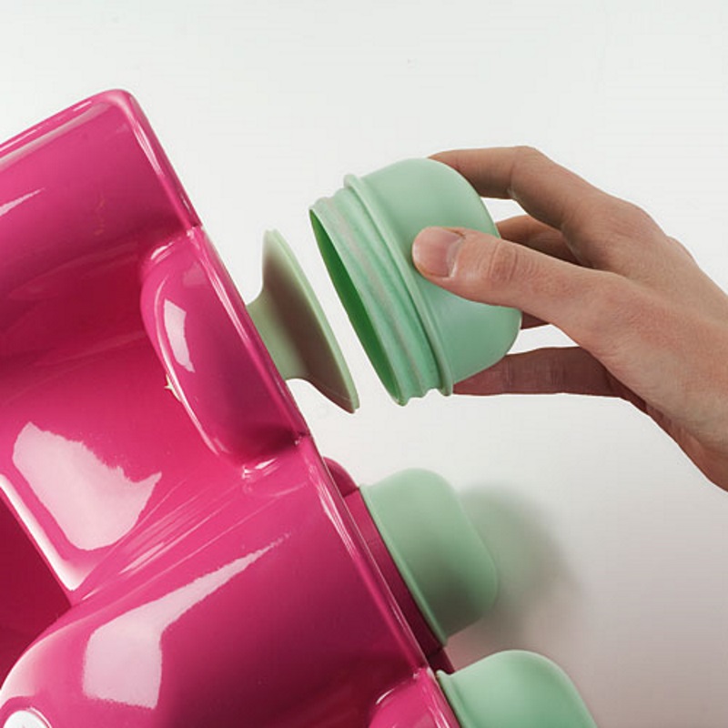 As almofadas de sucção podem ser cobertas e o assento do banho torna-se uma pequena cadeira para ser usado no chão.