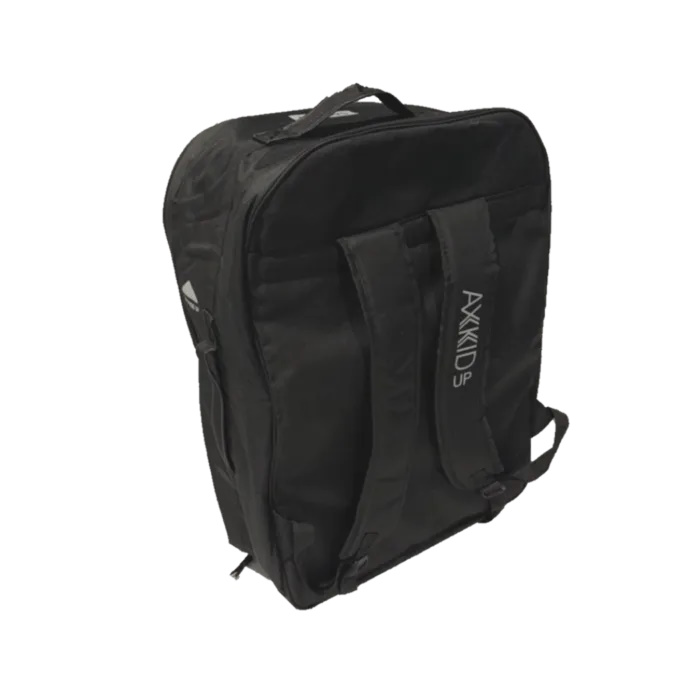 Saco mochila de viagem: Feita à medida para se ajustar perfeitamente ao Axkid Up™ dobrado, garante um transporte fácil e um armazenamento compacto. Com proteção acolchoada contra impactos e fecho impermeável, a bolsa de transporte Axkid Up mantém a sua cadeira segura e protegida durante o transporte.