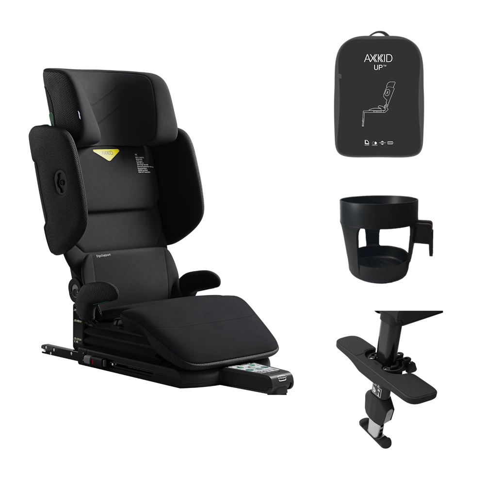 Apoio de pés: Melhore a experiência de viagem do seu filho com o apoio para os pés ajustável para Axkid Up™. O apoio extra para as pernas proporciona uma posição mais confortável e ergonómica para o seu filho.