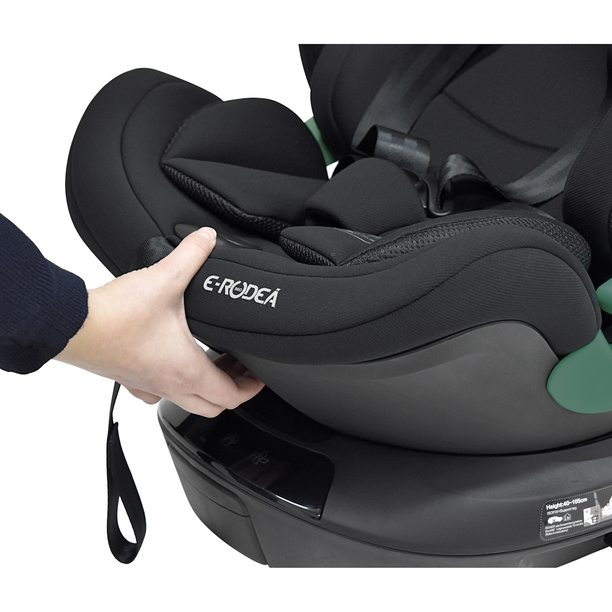 Versatilidade: A cadeira auto E-Rodeá da Carbebé é rotativa 360° e muito versátil, uma vez que permite um fácil acesso para a colocação e a remoção do bebé com a cadeira virada para a porta do automóvel.