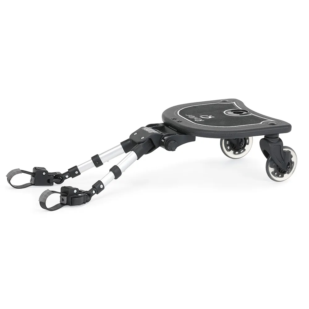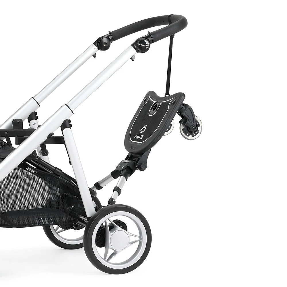 Roller+ é um produto prático e confortável que pode ser fixo às pernas traseiras da maioria dos carrinhos de bebé e cadeiras de rua.