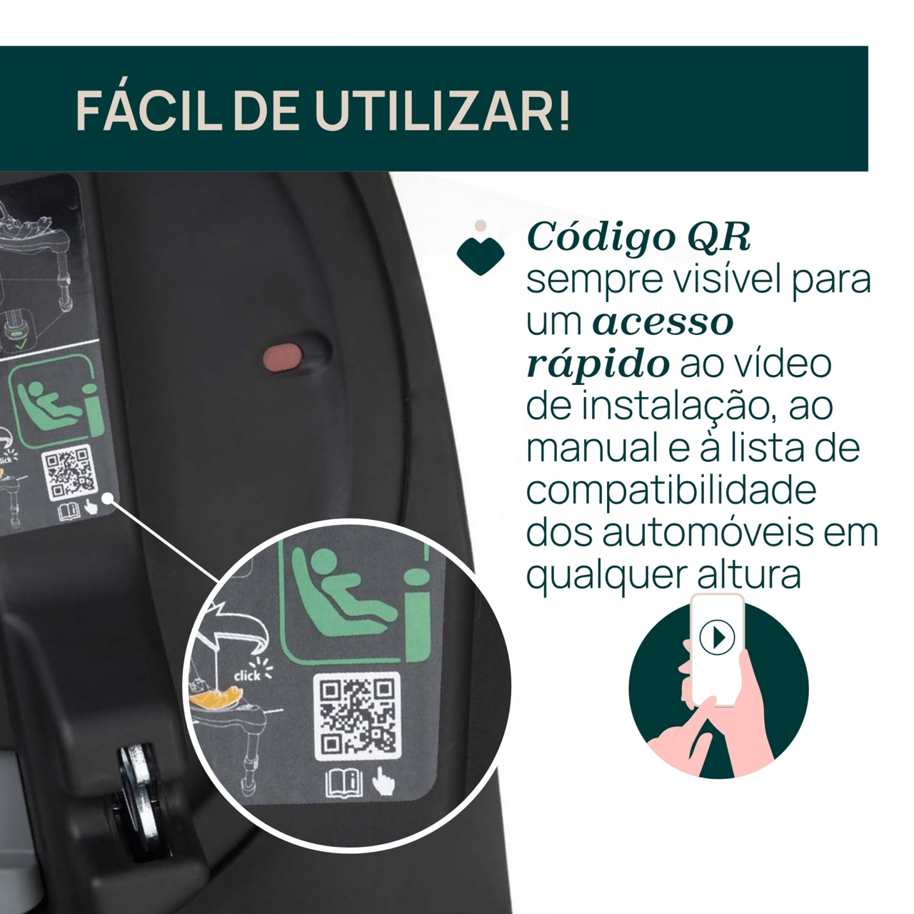 Instalação fácil e rápida da cadeira auto graças ao sistema One-Click.