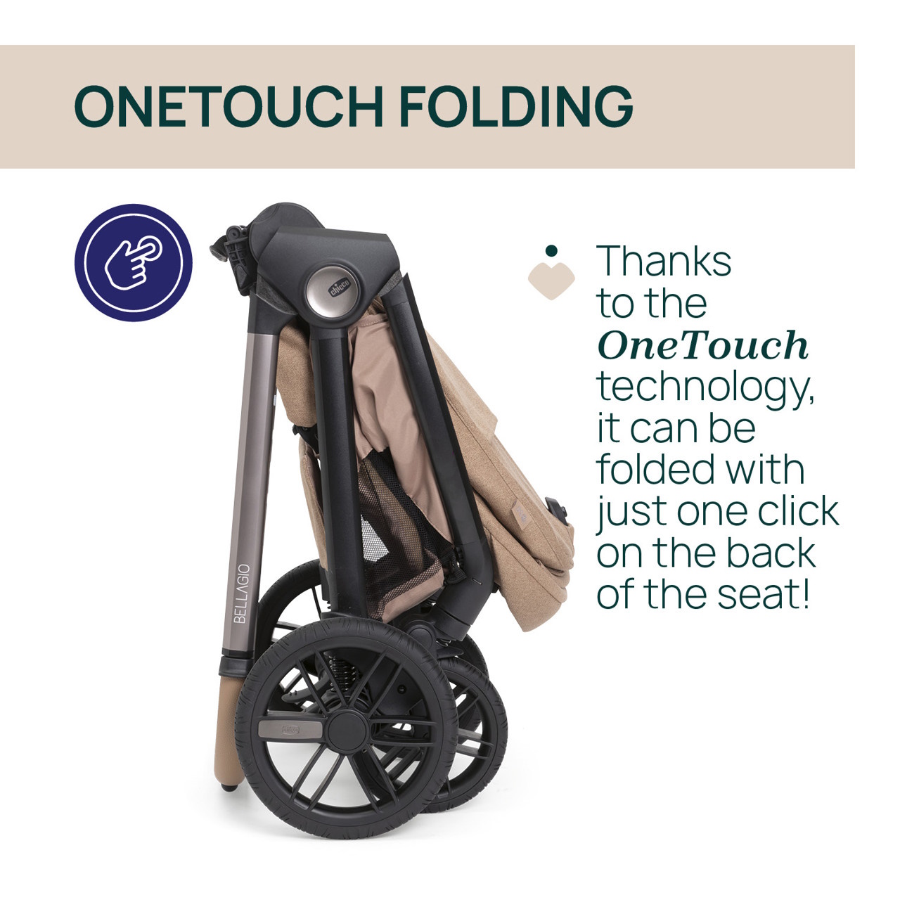 O Chicco Bellagio 2.0 é um carro de bebé premium, projetado para oferecer conforto e praticidade aos pais, com destaque para seu sistema de dobragem automática e design elegante.