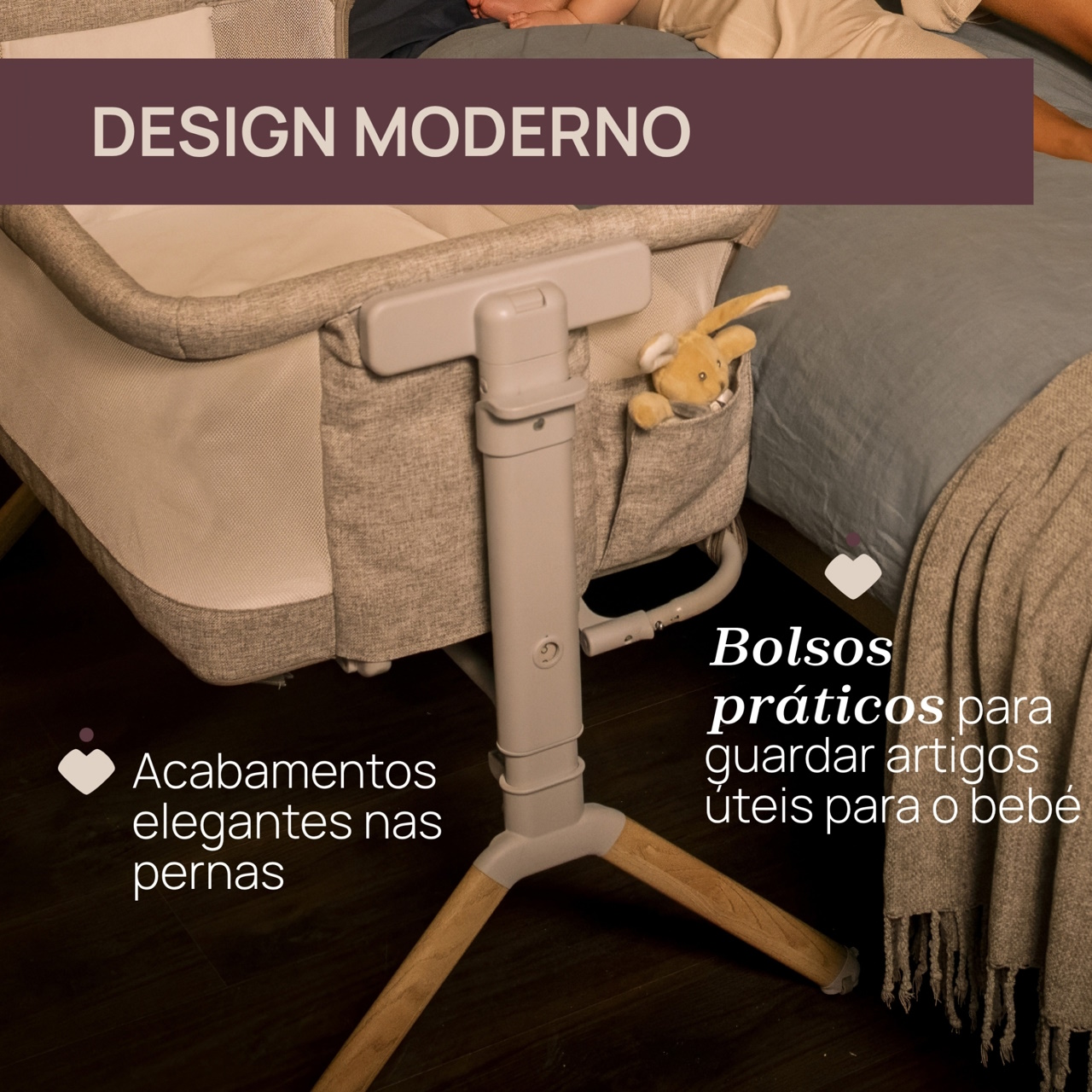 Design Moderno: Chicco Next2Me Armonia não é apenas um berço simples, é uma verdadeira peça de mobiliário em casa, graças aos tubos com acabamento em várias cores que combinam com os diferentes tecidos.