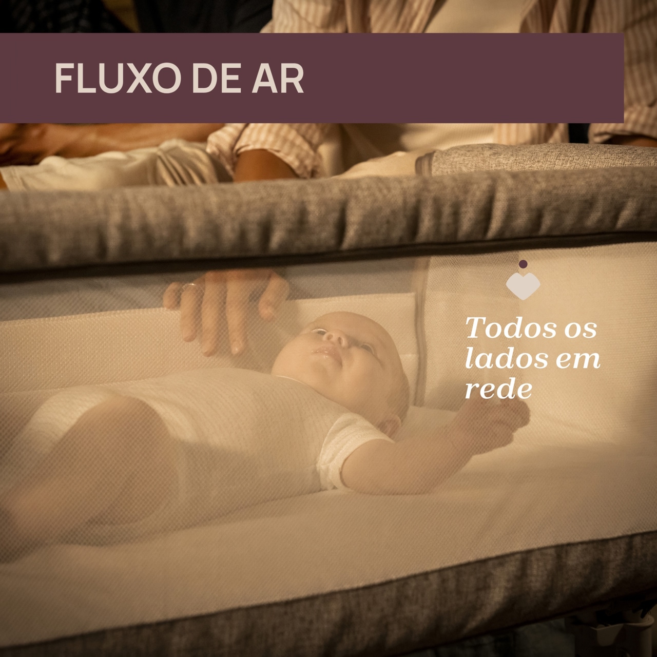 Lados são em rede: 4 janelas de rede para garantir uma melhor circulação de ar e permitir vigiar o bebé.