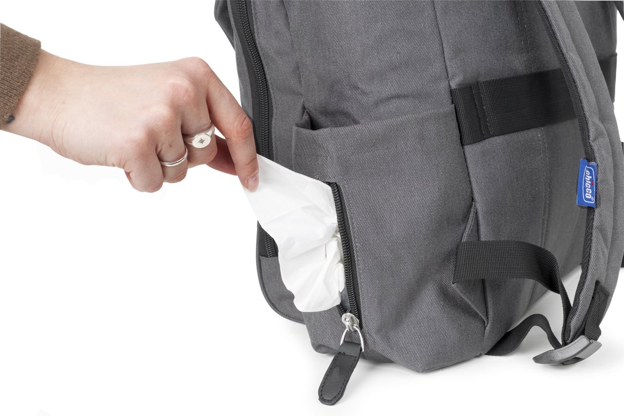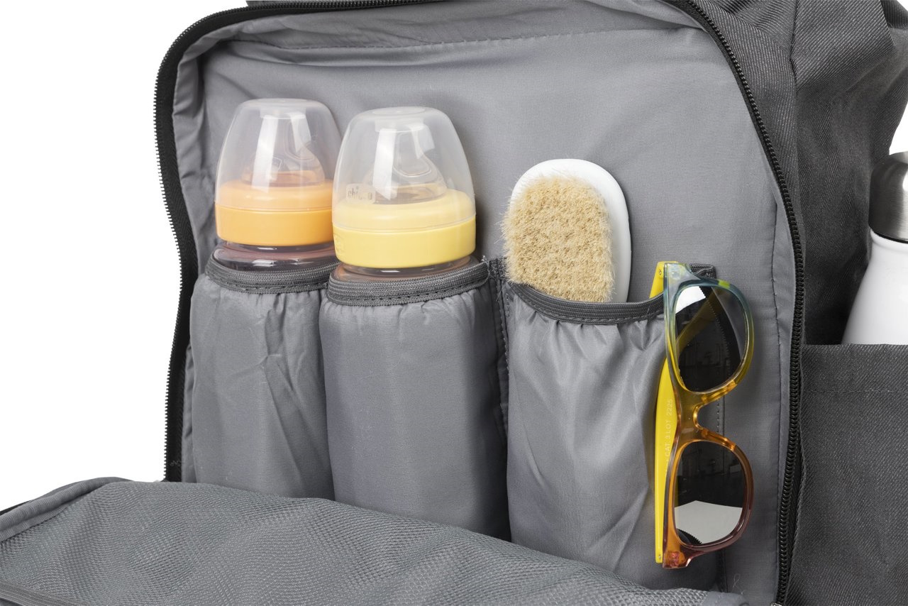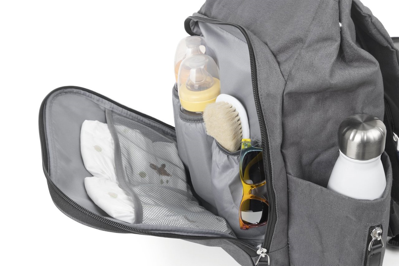 Mochila dos pais: prática, elegante e bem equipada para guardar tudo o que precisa para o seu bebé.