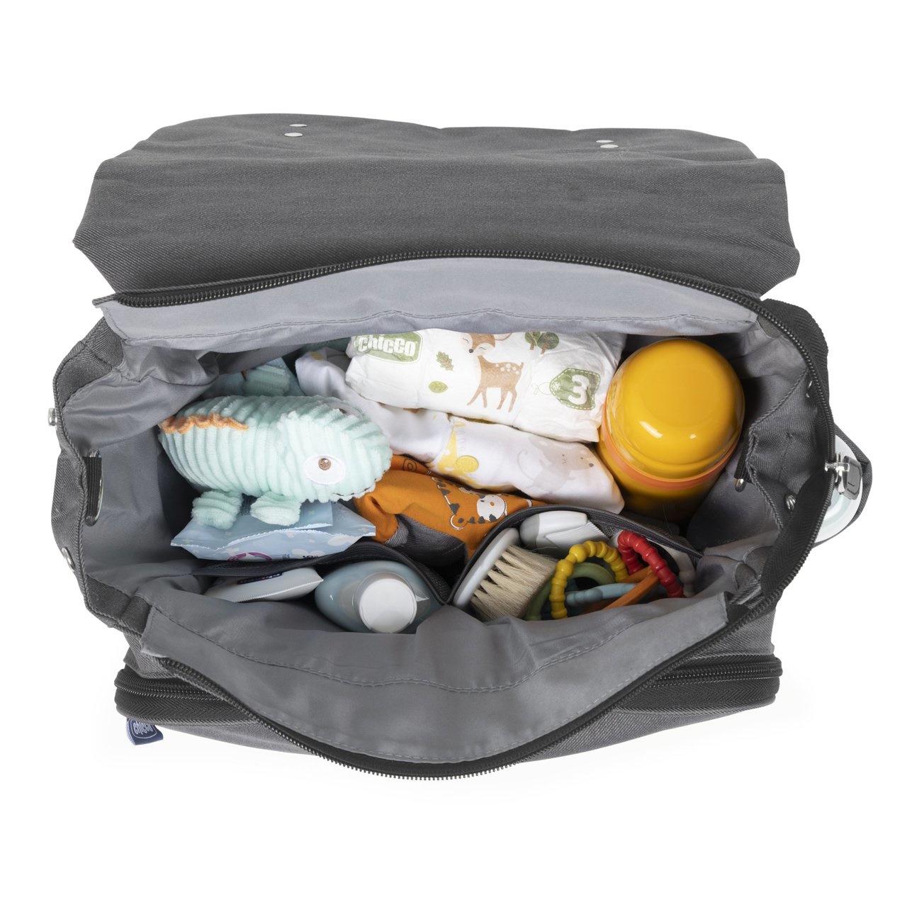 Prática e elegante: Tecido premium para um aspecto fresco. O amplo armazenamento fazem desta mochila um acessório essencial para ter tudo à mão. Leve e funcional, está equipado com um compartimento central espaçoso, uma bolsa térmica, prático tapete trocador, bolsos laterais e é muito fácil de abrir e fechar graças ao seu fecho magnético.