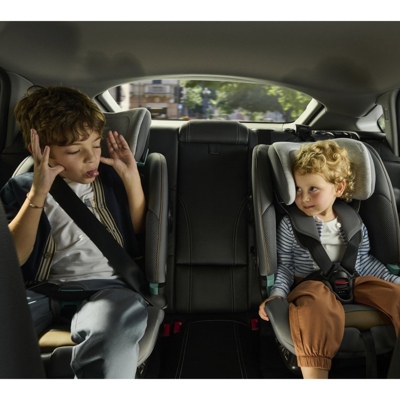 Side safety system: Proteção lateral integrada + protetor adicional para instalar opcionalmente com uma só mão, do lado da porta do veículo. Pode ser ajustado com um movimento telescópico para se adaptar ao espaço do automóvel.
