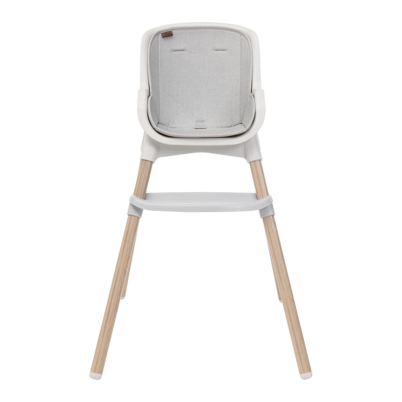 Estilo contemporâneo com linhas suaves e design minimalista: Efeitos em madeira nas pernas e um tecido precioso para a cadeira de papa.