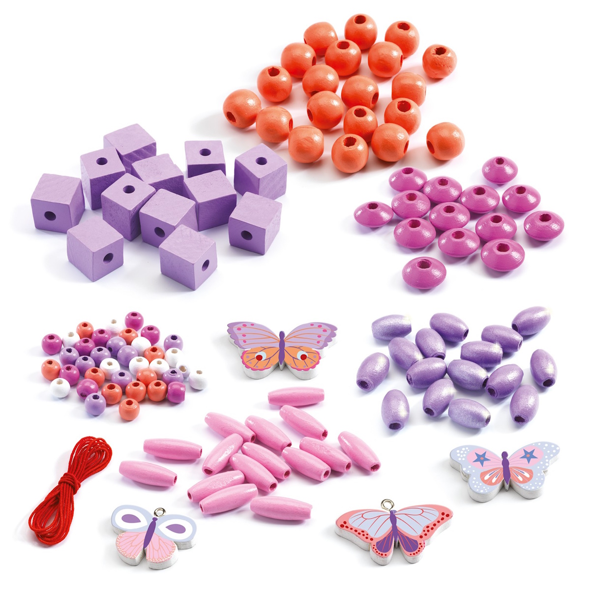 O conjunto de contas e borboletas de madeira Oh! Les Perls contém mais de 450 contas, perfeitas para criar bonitas peças de joalharia.