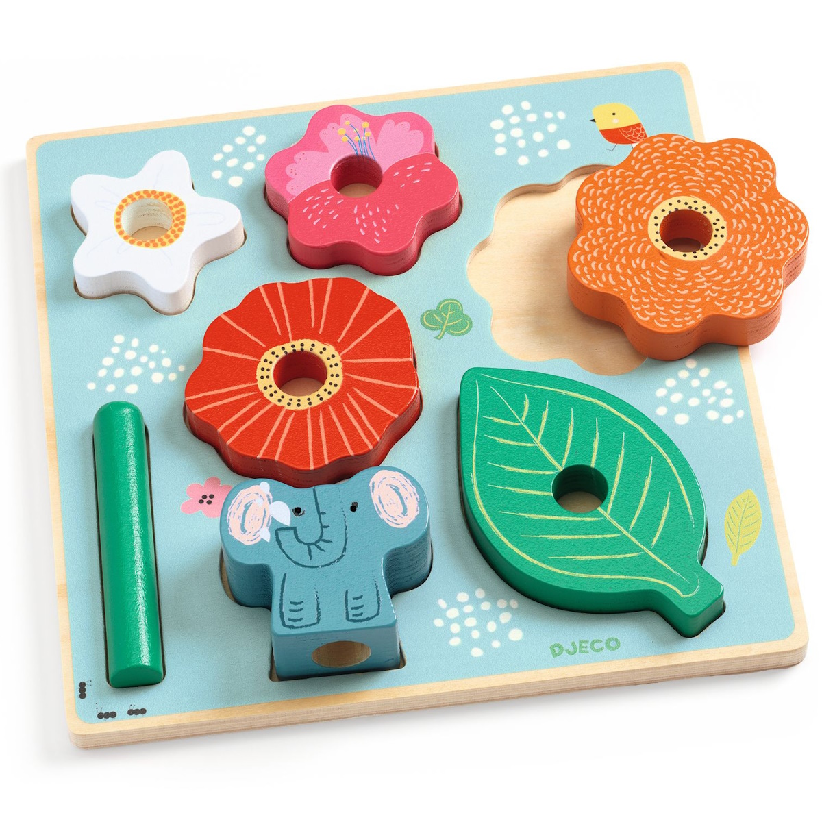 Puzzle madeira 2 em 1 Djeco Puzz & Stack Happy wooden puzzle