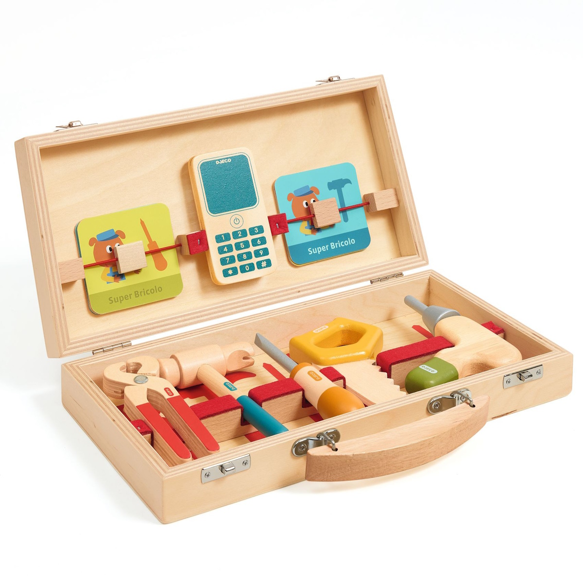 Brinquedo madeira caixa ferramentas Djeco Super Bricolo toolbox for kids