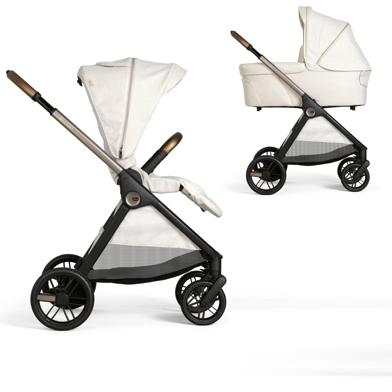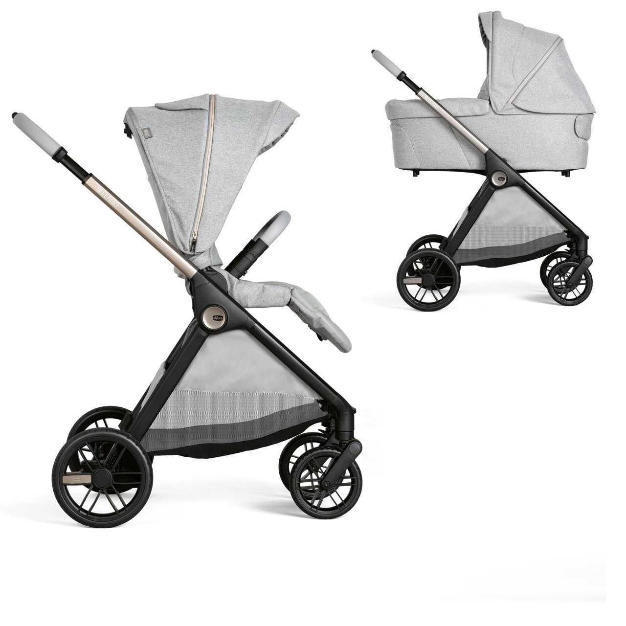 Carrinho homologado desde o nascimento até aos 22 kg. O assento é facilmente reversível, o encosto reclina totalmente e ajustável em 4 posições com uma só mão. Capota XL com proteção UV50+, tratamento resistente à água e janela para espreitar o bebé.