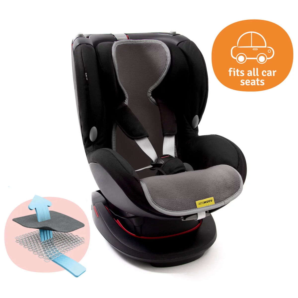 A forra AeroMoov foi projetada especificamente para manter seu bebé fresquinho e seco na sua cadeirinha ou carrinho.