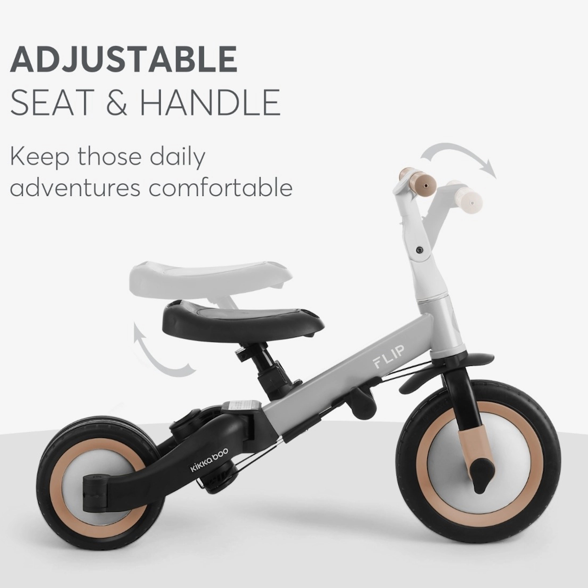 O FLIP é o companheiro perfeito para as primeiras aventuras de pilotagem do seu filho, combinando versatilidade, segurança e conforto em um design elegante. Seja usada como um triciclo para os pilotos mais jovens ou como uma bicicleta de equilíbrio para crianças mais velhas, ela garante passeios agradáveis e seguros em todas as etapas.