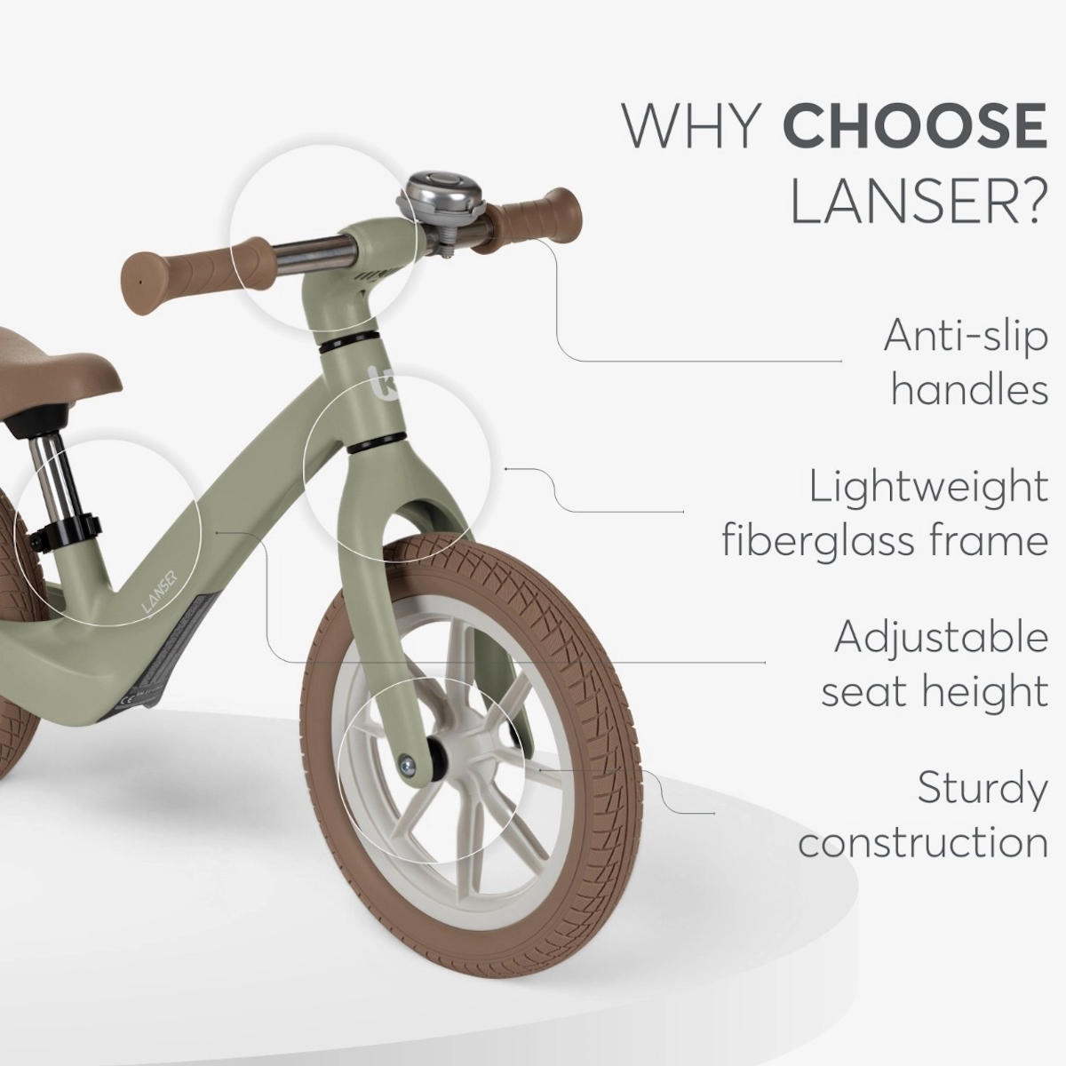 LANSER é uma bicicleta de equilíbrio que foi ajustada até o último detalhe. Distingue-se pelo seu design único, construção leve e capacidade de ajuste. Ela rapidamente se tornará um companheiro amado em cada caminhada com seu filho.