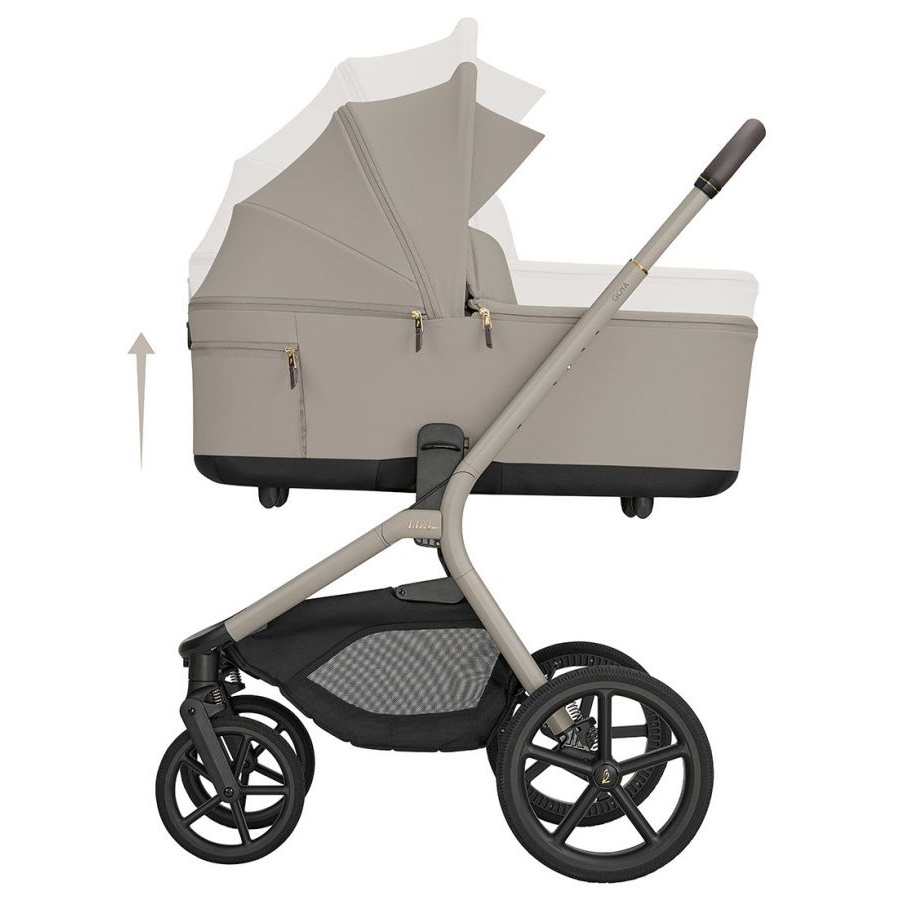 O GOYA oferece um sistema de altura ajustável tanto para a alcofa como para o assento, com duas posições de elevação. Isto permite aos pais manter um melhor contacto visual e um acesso mais fácil ao seu bebé em todas as situações.