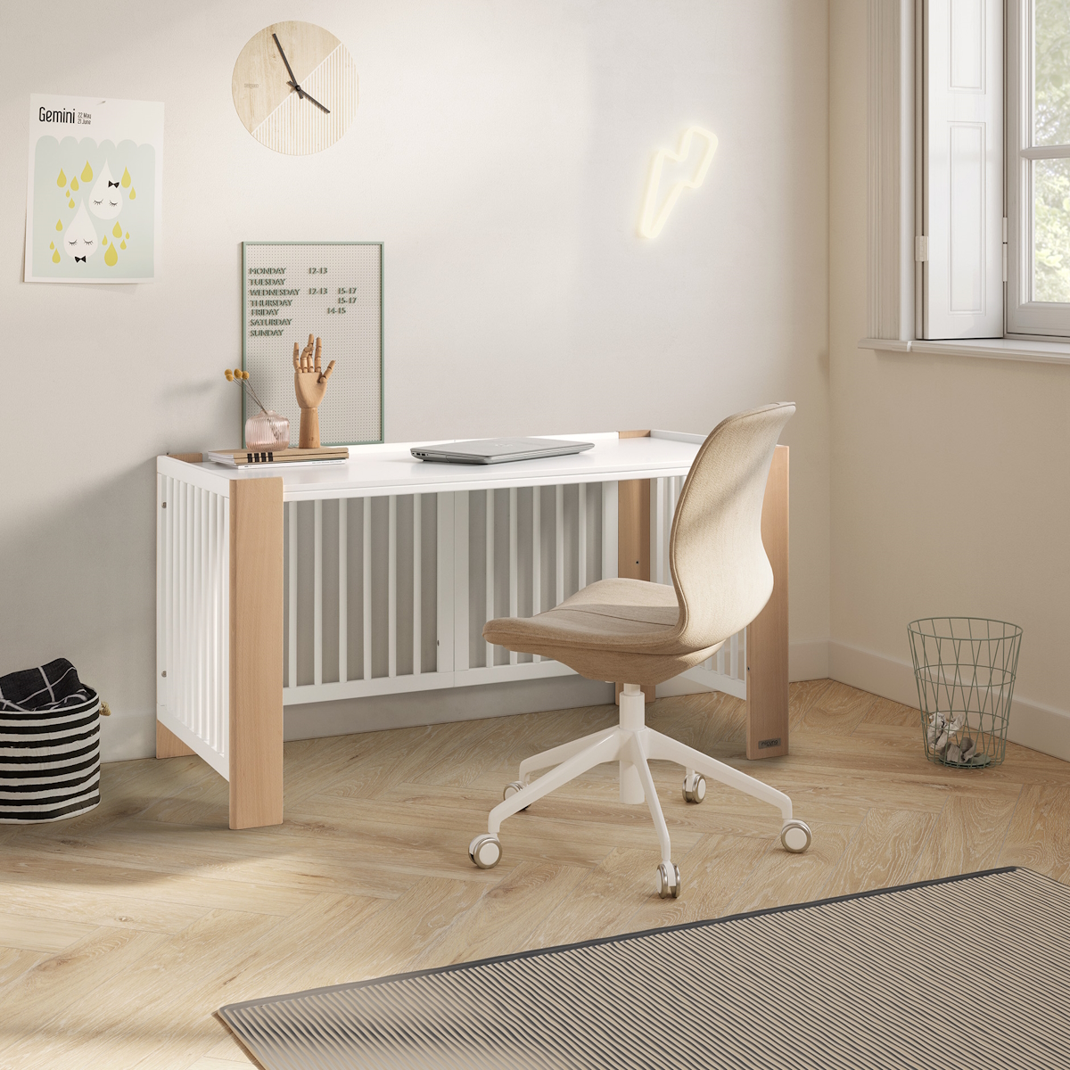 Tamanho 90 x 50 cm – Configurações: Berço, Berço “co-sleep”, Mini-sofá, Mesa de jogos e Secretária.