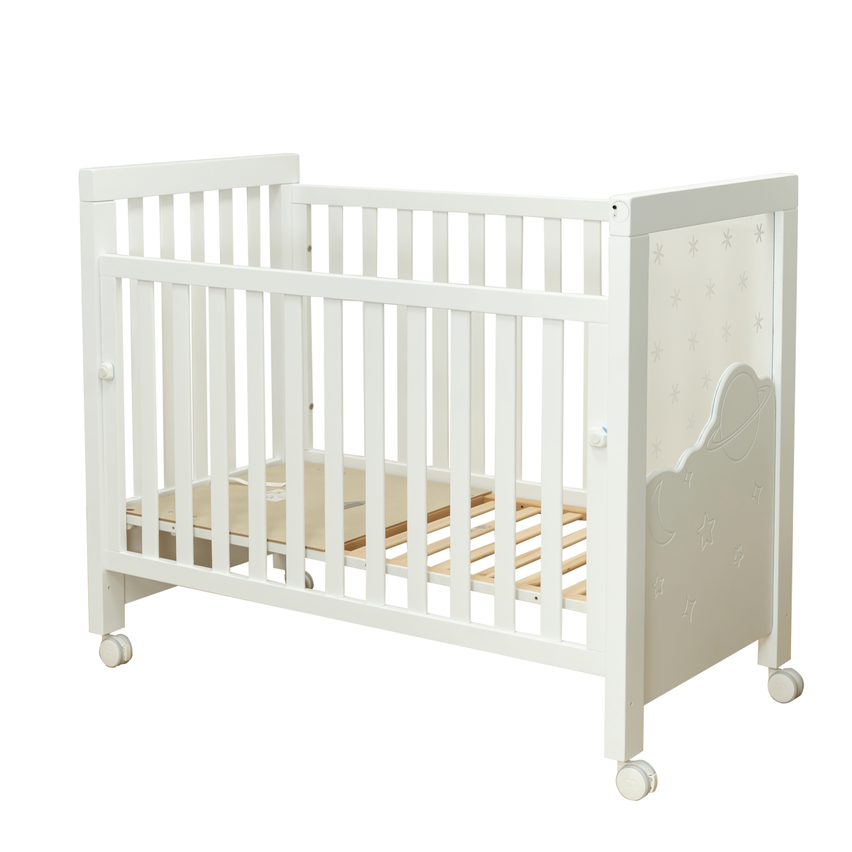 A cama de grades Dolce Magic 120x60 é a escolha perfeita para ajudar o seu bebé a adormecer, graças à suave iluminação em forma de estrela num dos painéis de cabeceira. O painel luminoso, que funciona com pilhas, é uma luz doce que transmite segurança e tranquilidade no quarto do bebé.