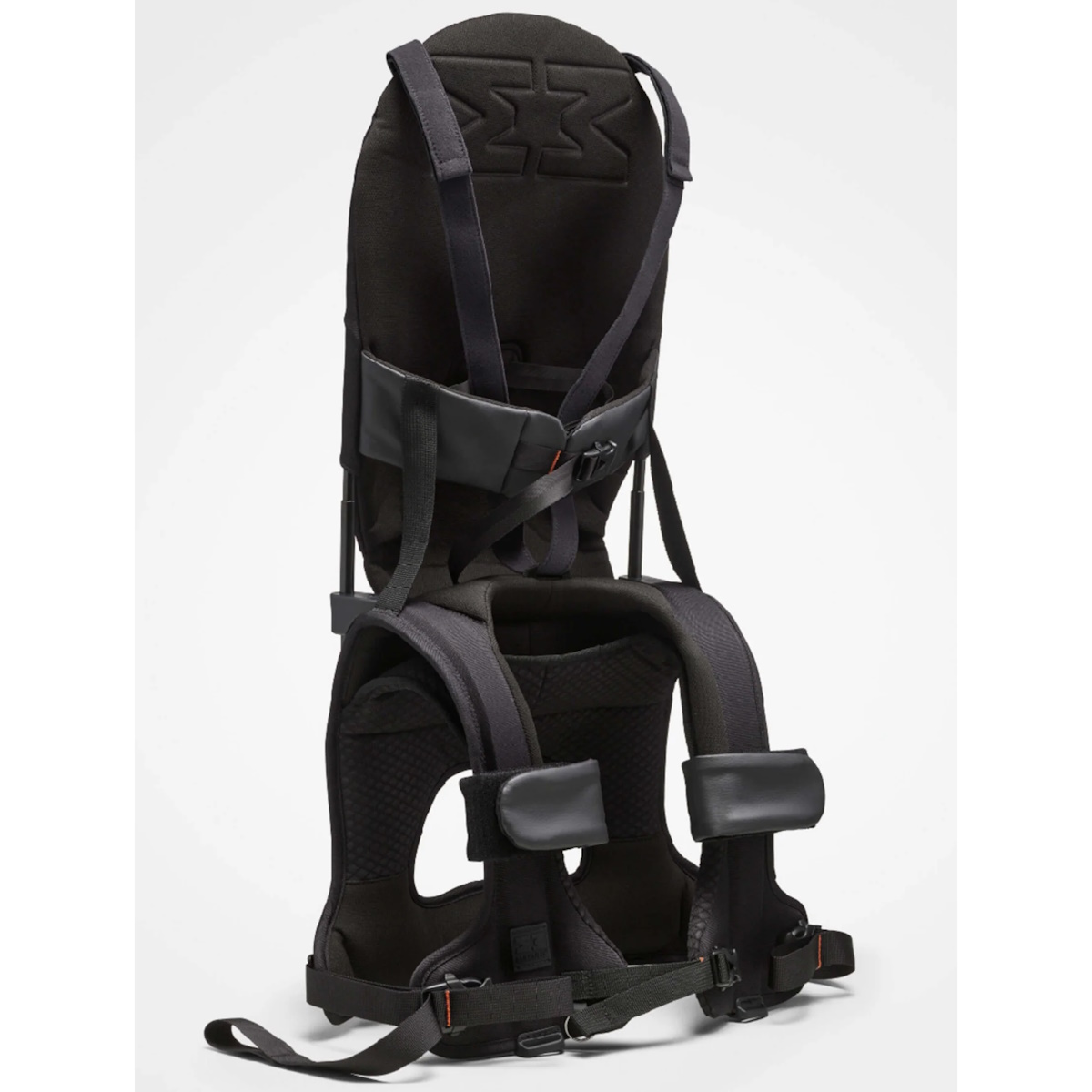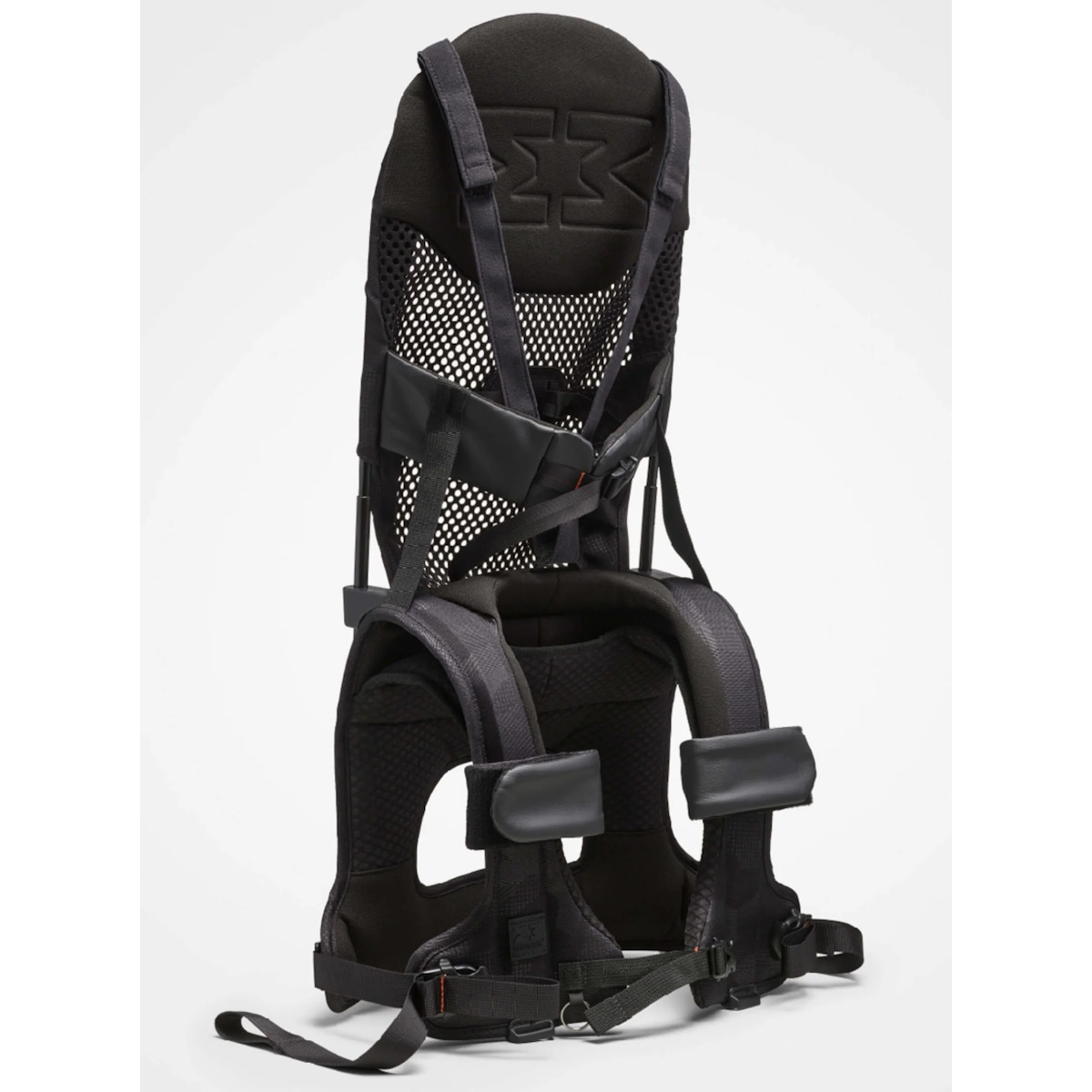 Basta desdobrar o porta-bebés, colocá-lo sobre os ombros e apertar as fivelas. Levante o seu filho para o assento e prenda-o com o cinto e as correias para as pernas.