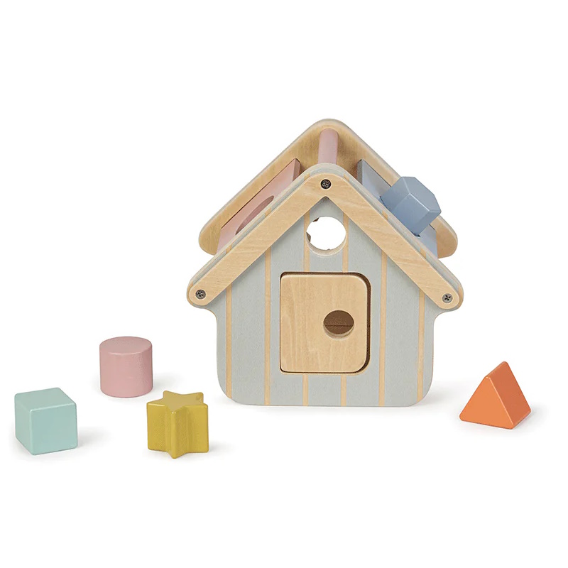 Toc-toc! Com esta bonita casa de madeira, seu pequeno passará horas de diversão e aprendendo. Tocar e encaixar as peças é uma atividade que melhorará suas habilidades motoras finas enquanto aprende a reconhecer formas e cores.
