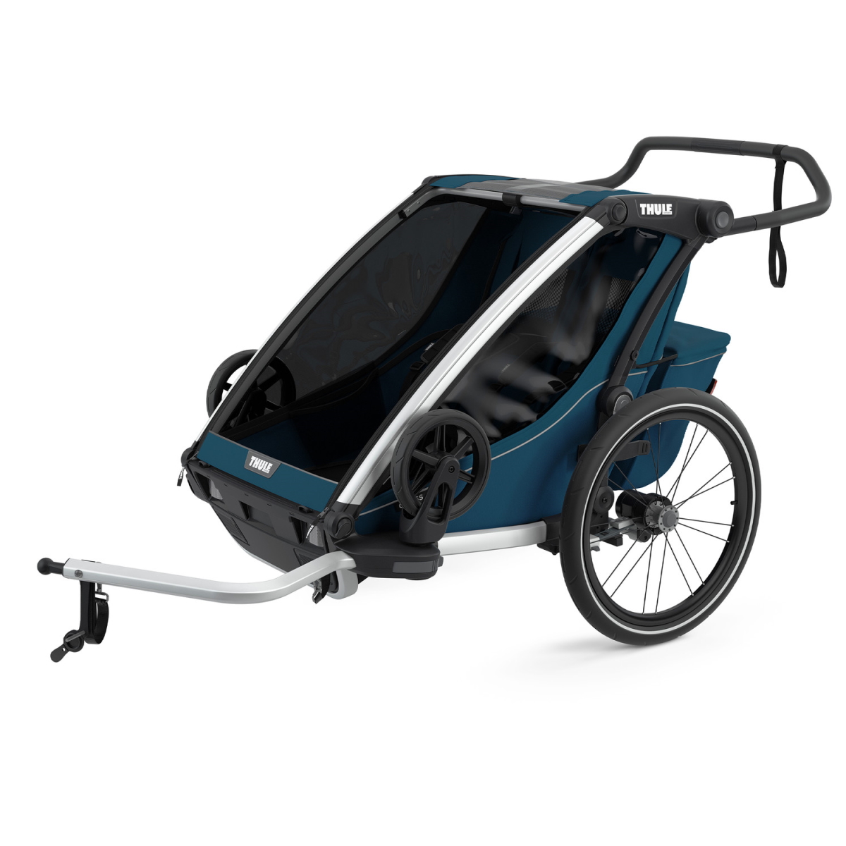 Um equipamento completo - atrelado, carrinho de corrida e de passeio - que proporciona conforto e flexibilidade para famílias com um estilo de vida activo. Para 1 ou 2 crianças.