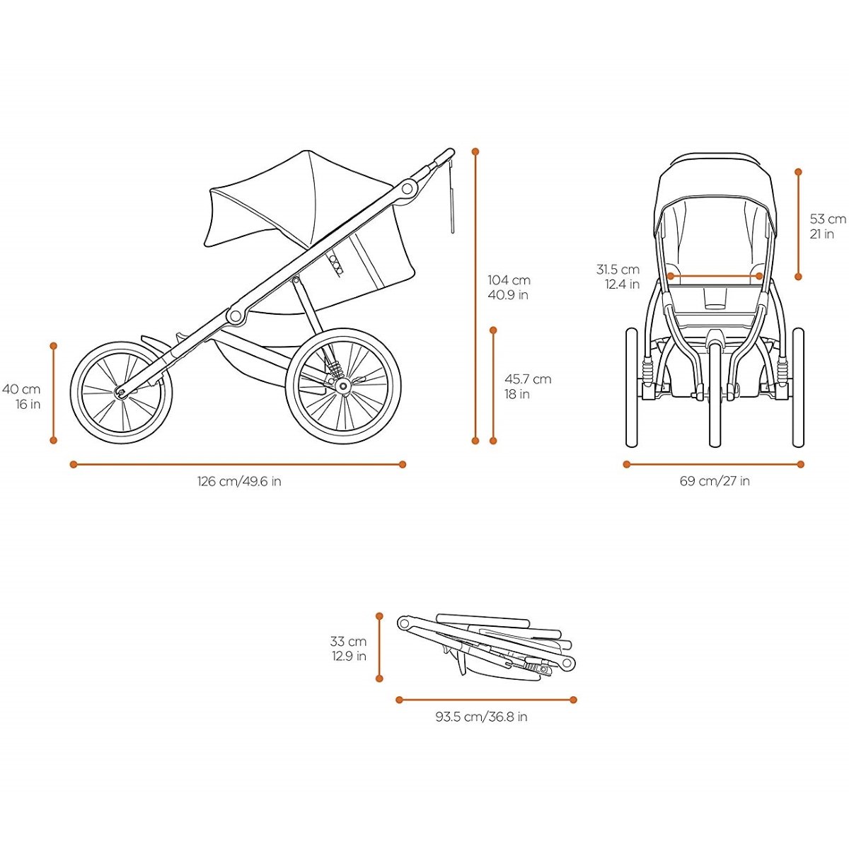 Um carrinho de corrida de alto desempenho com um design leve e aerodinâmico que lhe permite desfrutar ao máximo da sua corrida em qualquer terreno, na companhia do seu filho.