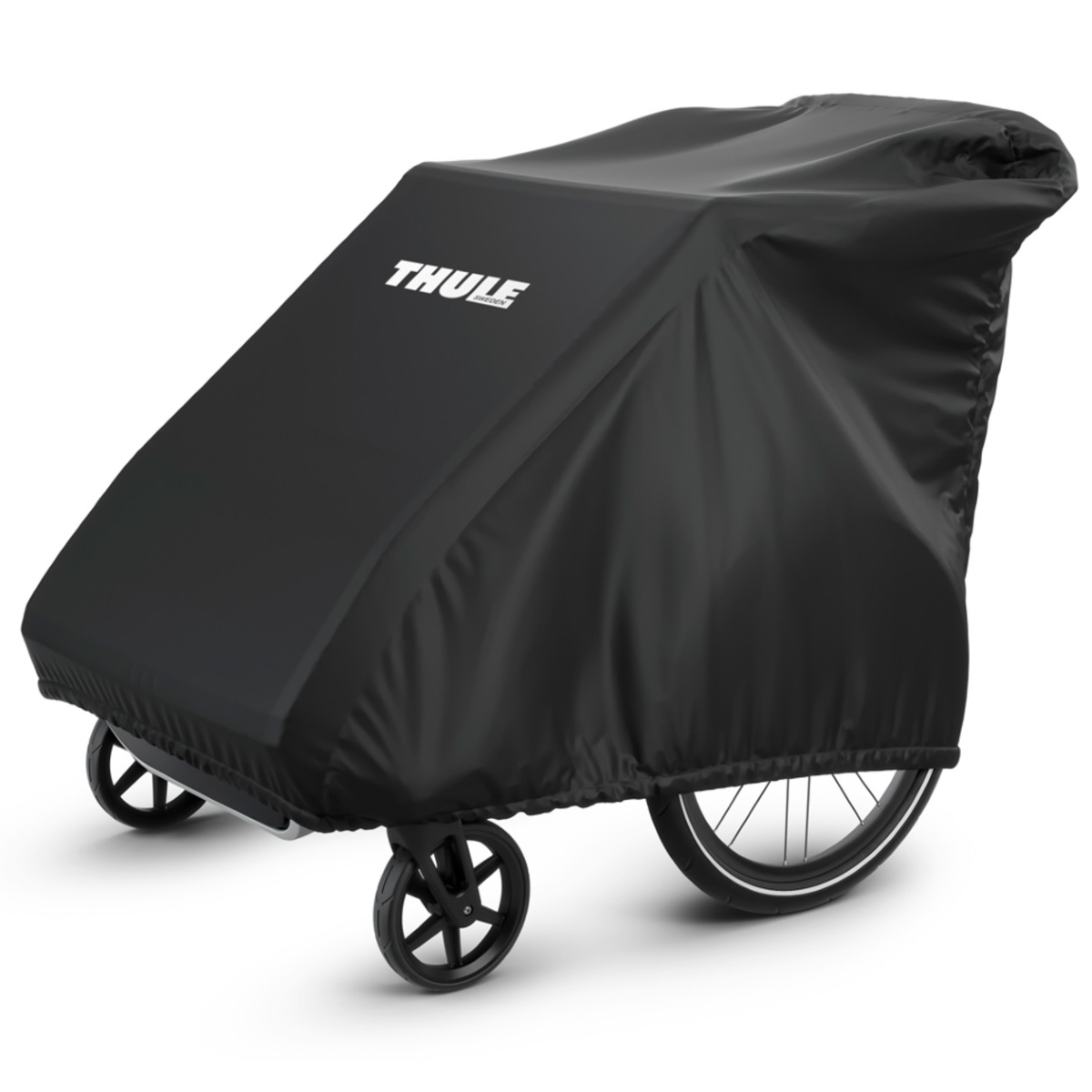 Uma capa durável de tecido que protege o seu transporte infantil Thule quando não está a ser usado.