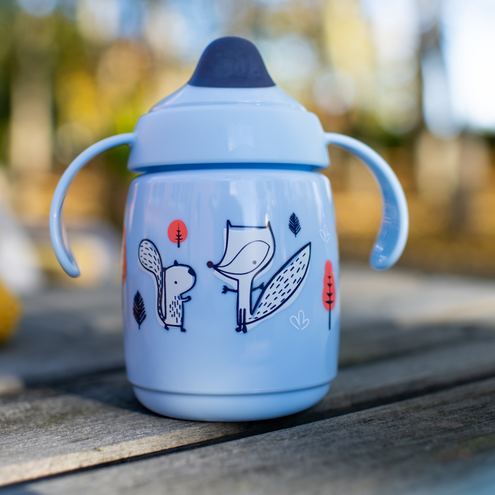 Este copo de aprendizagem vem com asas de fácil agarre, especialmente desenhadas para as mãos pequenas.