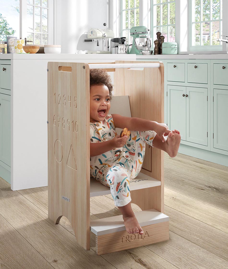 A torre de aprendizagem evolutiva e transformável TROTTA é um produto da linha Micussori, a família Montessori da Micuna. Será de grande ajuda nos primeiros anos de vida da criança. Na fase de maior interesse e curiosidade, irá ajudá-los a chegar a locais de difícil acesso como a bancada da cozinha ou o lavatório, ajudando a criança a ser mais autónoma, seguindo a filosofia Montessori.