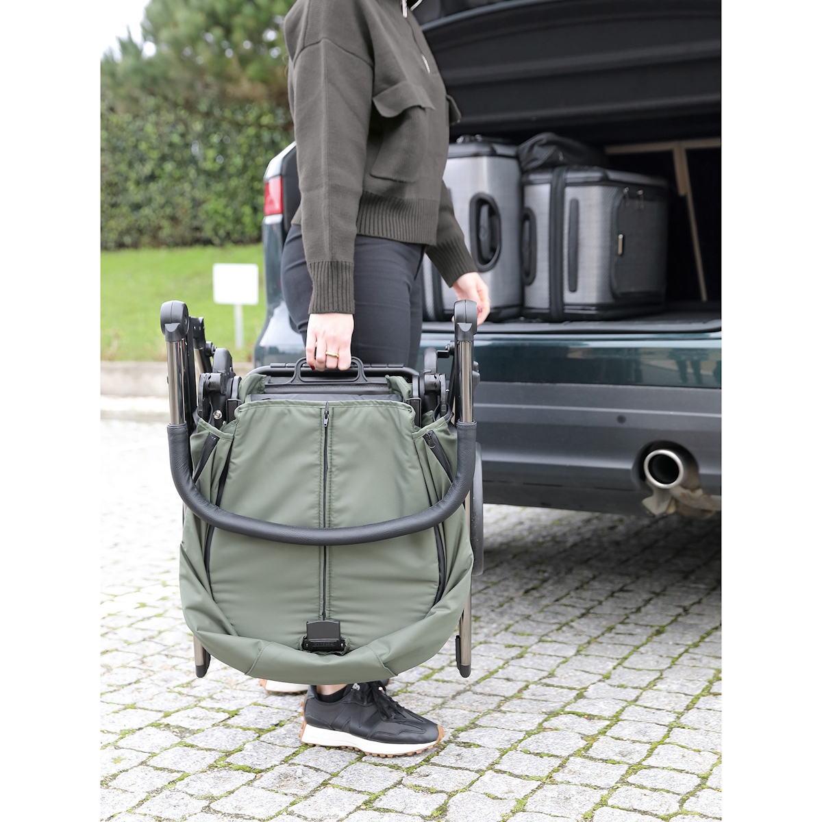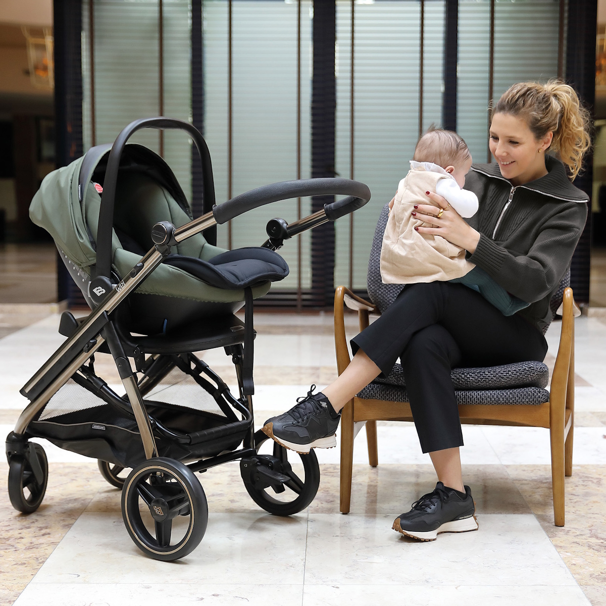Equipada ainda com uma pega rebatível para que possa aceder facilmente ao bebé.