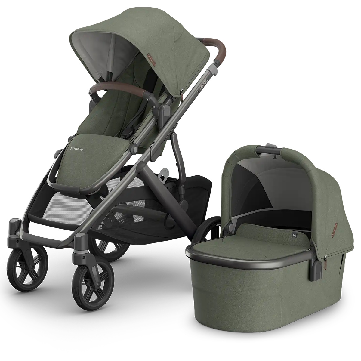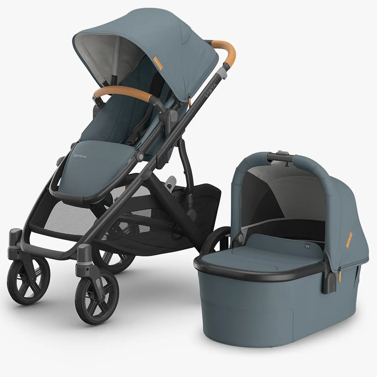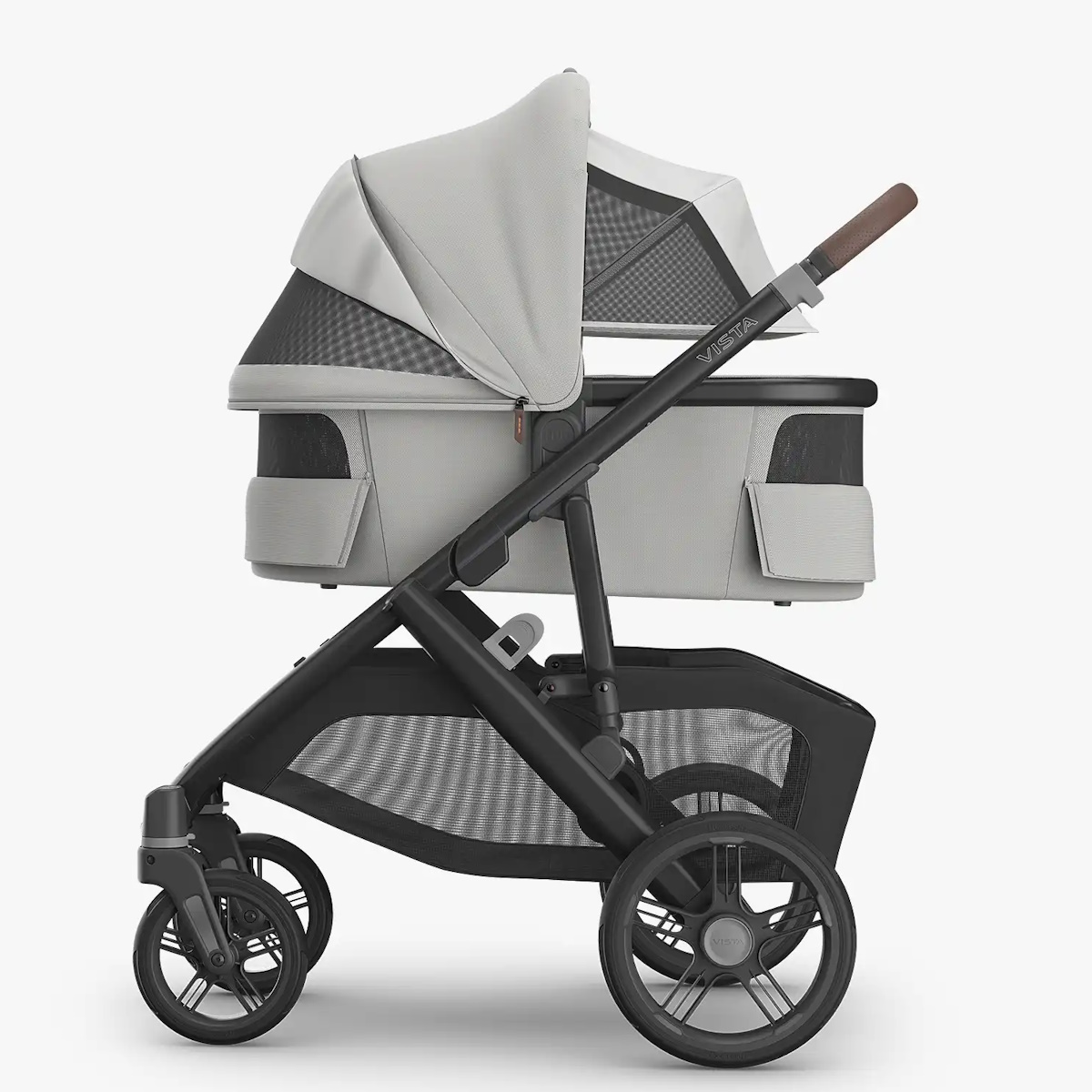 Modo duplo: O Vista V3 permite duas cadeiras auto para bebés, dois berços, dois assentos (assento para crianças e RumbleSeat) ou uma combinação, oferecendo várias posições para acompanhar e crescer com a sua família.
